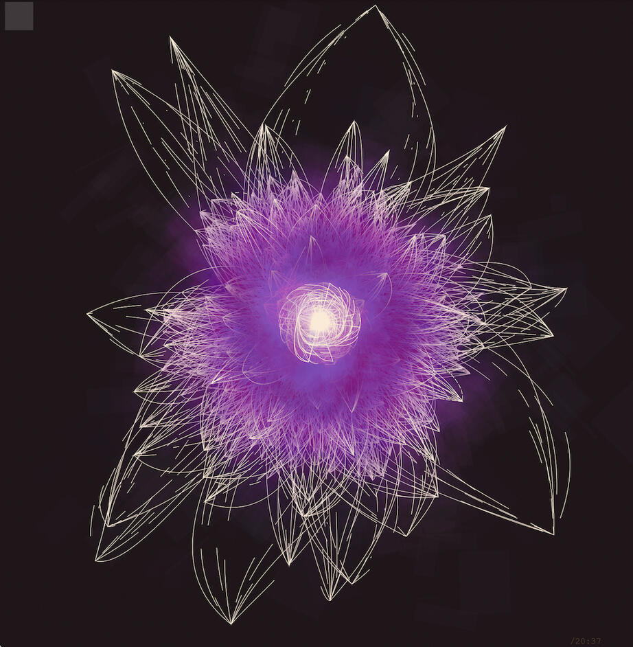 Other things you might find helpful…My twitter, where I post WIPs. My newsletter, where I write about the creative process. A 10 minute tutorial, where you can learn the basics of generative art. A small fire to keep warm. A galaxy to explore. A flower to pick.